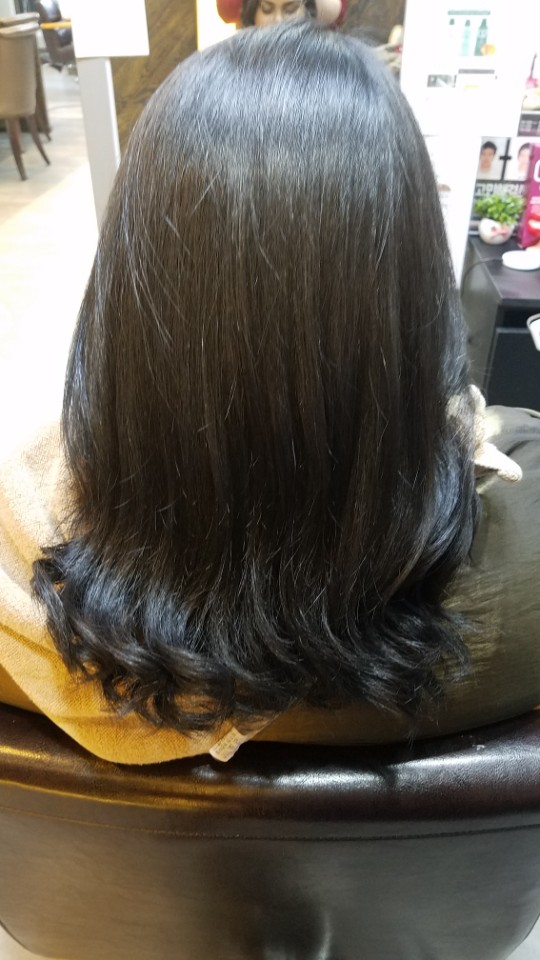 I have extremely frizzy and curly natural hair and because I don’t know how to manage my hair when it’s curly, I have been straightening it (with my trusty GHDs) since I was in secondary school. However, straightening it every day for over 10 years has led to a lot of damage and my hair not growing past the top of my shoulders. So after about 2 years of living in Korea, someone recommended that I get a straight perm instead of damaging my hair with heat. Usually, I am against chemical treatments, but Korean summers are so humid!!!! Humidity and curly hair are not friends. So I gave it a try. Now I can’t stop getting it done.